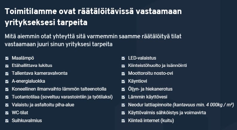 Tyylikäs ja monikäyttöinen halliosake Turun Gotlanninkatu 12:sta tarjoaa loistavan sijainnin ja toimivat tilaratkaisut erilaisiin tarpeisiin – olipa kyse välivarastoinnista, työtilasta tai kevyestä tuotannosta. Tilat ovat valmiina käyttöön 2026, ja niitä voidaan muokata asiakkaan toiveiden mukaan, joten ole yhteydessä, jos kiinnostuksesi heräsi.